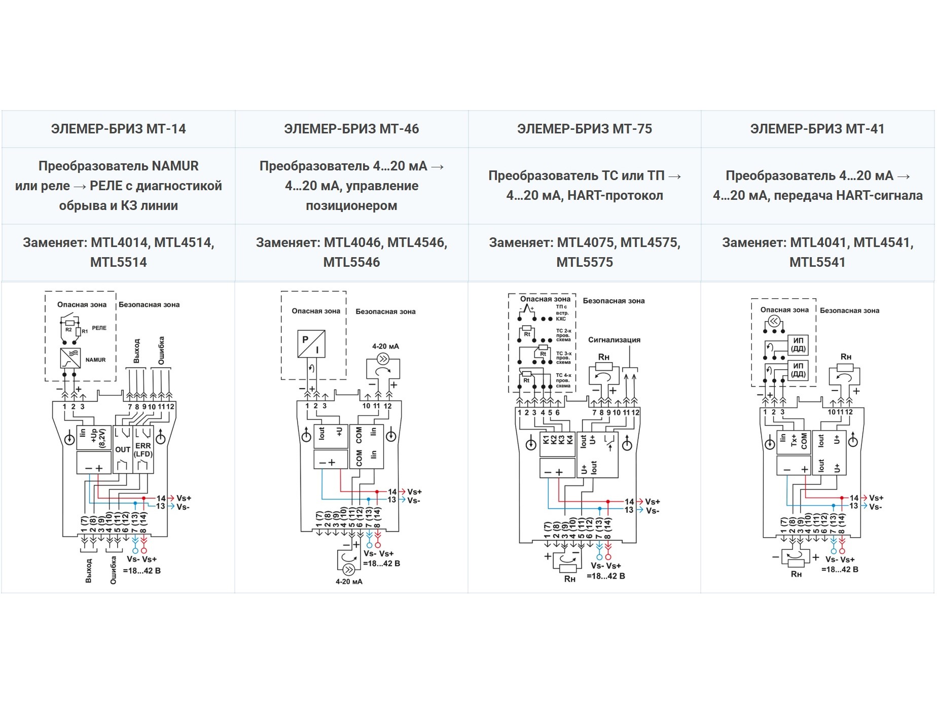 Уникальной особенностью разработки НПП «ЭЛЕМЕР» стала унификация трех популярных серий барьеров MTL производства корпорации Eaton в одном решении. Например, ЭЛЕМЕР-БРИЗ МТ-41 функционально заменяет сразу три барьера: MTL4041, MTL4541 и MTL5541. Это значительно упрощает их подбор и применение.
